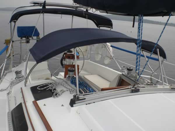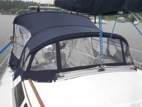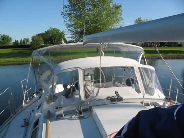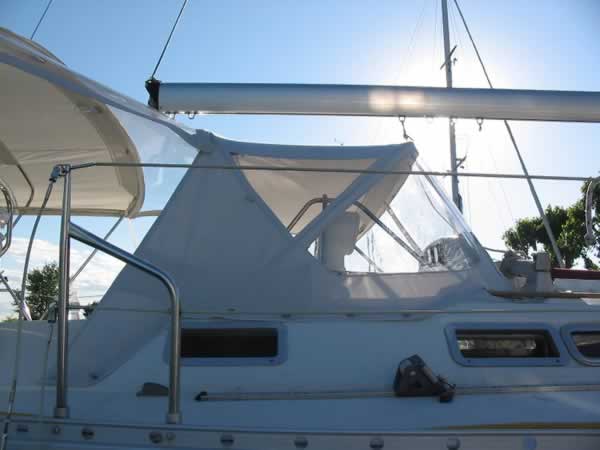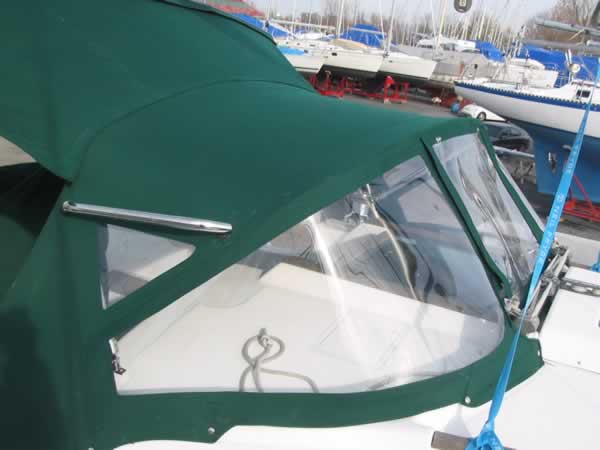 Nos dodgers sont fabriqués avec le tissu « Sunbrella ». Les fenêtres sont en « Plastiques transparents » ou en « Strataglass ».