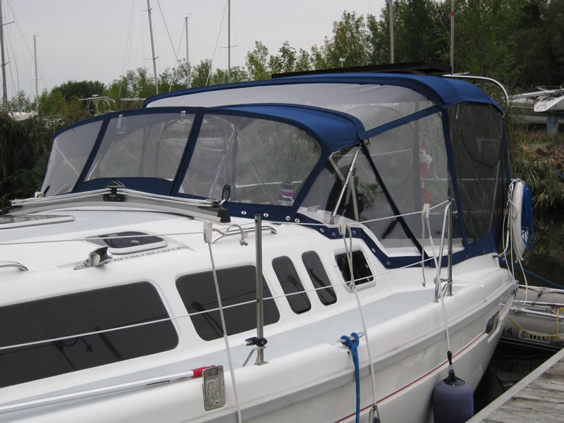 Bateau complètement fermé. Avec panneaux en Plastique transparent et Moustiquaire.