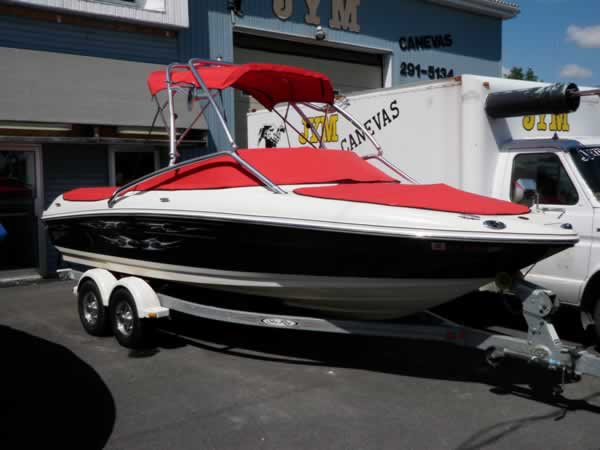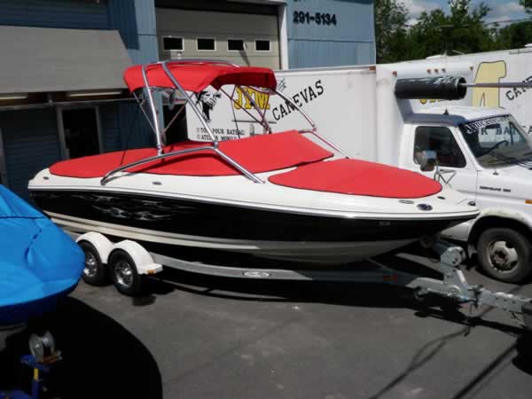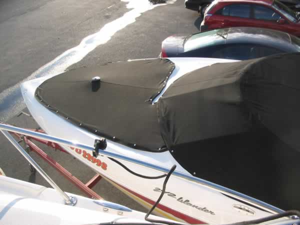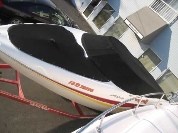 Toile de protection ou de Transport fixée avec boutons-pression ou tourniquets autour du bateau.